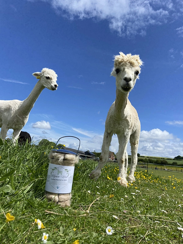 Enhance your garden with our Alpaca Wool Bird Feeders! This large multi-feeder is the perfect addition to attract a variety of birds to your backyard. This Alpaca Bird Nesting Fleece is 100% natural and untreated alpaca fibre wool, providing the perfect soft and warm material for nesting birds. The wool comes from our herd of Oxfordshire Alpacas.
